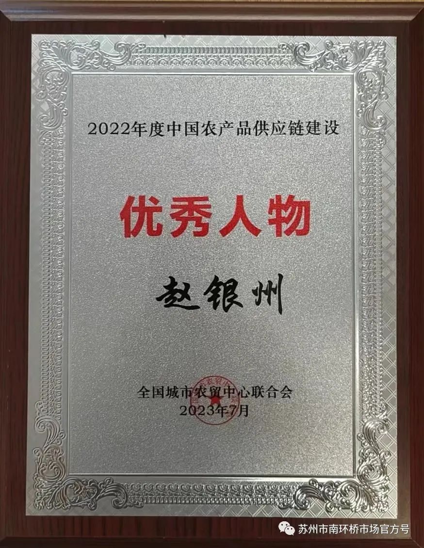 当前,赵银州的事业蒸蒸日上,良好口碑和责任,让“农盛源”品牌获得多项荣誉。2023年5月,甘肃省商务局授予苏州农盛源农副产品有限公司“甘肃省农产品销售服务中心”荣誉称号;2023年7月,全国农贸联合会授予赵银州“2022年度中国农产品供应链建设”优秀人物荣誉称号;他还连续多年被南环桥市场评为 “食品安全示范商户”以及“优质商户”。